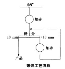 將原來的破碎工藝改造為兩段一閉路工藝,其流程如下圖所示。