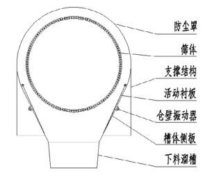 通圓振動(dòng)篩的倉(cāng)壁振動(dòng)器安裝在槽體(兩側(cè))和進(jìn)料斗外壁上,從而帶動(dòng)整個(gè)圓振動(dòng)篩振動(dòng),以達(dá)到清除積料的作用。但對(duì)于粘度較高的紅土鎳礦,其清料效果并不理想。在槽體兩側(cè)與進(jìn)料斗內(nèi)壁加裝活動(dòng)襯板,倉(cāng)壁振動(dòng)器直接帶動(dòng)活動(dòng)襯板振動(dòng),可以有效抑制細(xì)物料在這些區(qū)域的堆積,保證圓振動(dòng)篩的正常運(yùn)行。