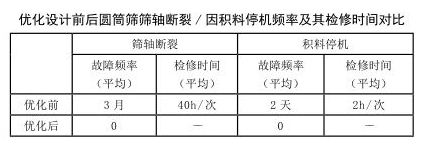 福建某鋼鐵廠紅土鎳礦用圓振動(dòng)篩優(yōu)化設(shè)計(jì)前后生產(chǎn)情況如下表所示。