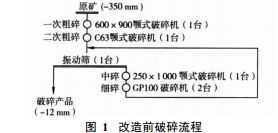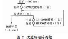2、將原來的2次粗碎改為1次粗碎,用1臺(tái)C80破碎機(jī)代替原來的1臺(tái)C63破碎機(jī)和1臺(tái)600×900破碎機(jī)。