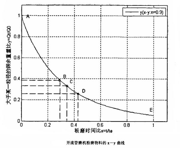 在C點,兩者的速度相等,是粉磨作用即破碎和粉磨的轉(zhuǎn)折點,因此可以認(rèn)為是確定隔倉裝置位置的基準(zhǔn)點。
