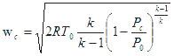 ,此式中Pc、P0是噴管進(jìn)、出口處相對壓力,MPa;k是氣體絕熱系數(shù),對室溫為1.4;R是其他常數(shù),T0是噴管進(jìn)口處的氣體溫度(K)。