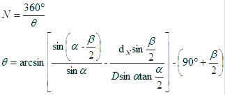 噴嘴射氣流的流束實(shí)際上是呈圓錐狀,其錐角為β,此圓錐將與分級圓交出一有限的圓弧。噴嘴1相交出的圓弧為AB,噴嘴2對應(yīng)的圓弧為BC,如此類推。如果每一個(gè)噴嘴對應(yīng)的圓弧起點(diǎn),恰是前一個(gè)噴嘴對應(yīng)圓弧的終點(diǎn),而且所有圓弧的總和正好是一個(gè)完整的分級圓周長,則認(rèn)為此時(shí)噴嘴數(shù)目就是合理噴嘴數(shù)目N。
