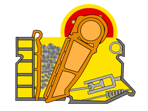 電動機驅動皮帶和皮帶輪,通過偏心軸使動鄂上下運動,當動鄂上升時肘板與動鄂間夾角變大,從而推動動鄂板向固定鄂板接近,與其同時物料被壓碎或劈碎,達到破碎的目的;當動鄂下行時,肘板與動鄂夾角變小,動鄂板在拉桿,彈簧的作用下,離開固定鄂板,此時已破碎物料從破碎腔下口排出。隨著電動機連續(xù)轉動而破碎機動鄂作周期運動壓碎和排泄物料,實現批量生產。