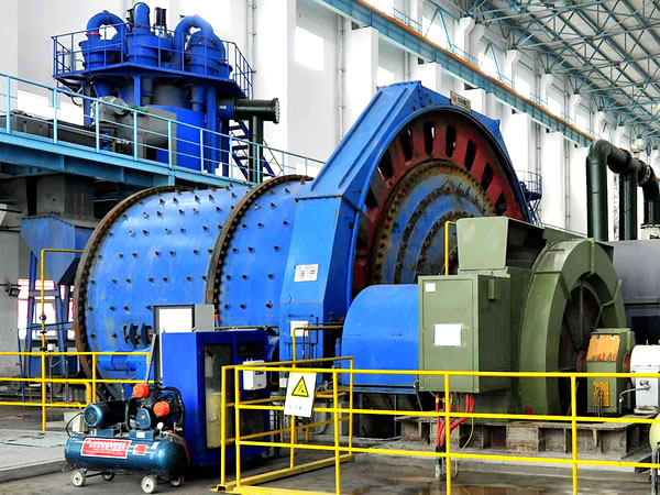 原煤由喂料設(shè)備進(jìn)入到磨機(jī)的進(jìn)料裝置中,溫度為300℃左右的熱風(fēng)也通過進(jìn)風(fēng)管進(jìn)入進(jìn)料裝置,烘干倉內(nèi)設(shè)有特制的揚(yáng)料板將原煤揚(yáng)起,使得原煤在此處進(jìn)行強(qiáng)烈的熱交換而得到烘干,烘干后的煤塊通過設(shè)有揚(yáng)料板的雙層隔倉板進(jìn)入粉磨倉。粉磨倉內(nèi)裝有研磨體(鋼球),煤塊在此倉內(nèi)被粉碎、研磨成煤粉。在煤塊被粉碎的同時(shí),由專用的引風(fēng)機(jī)經(jīng)過磨機(jī)的出料裝置將已粉碎的煤粉及氣體一同帶出磨機(jī),較粗的顆粒會(huì)經(jīng)過出料裝置的返料螺旋返回到粉磨倉內(nèi)進(jìn)行再次粉磨。